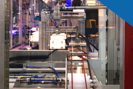 Product: cartridge for silicone pistols Function: fully automated inspection and packaging line connected to the injection moulding machine.